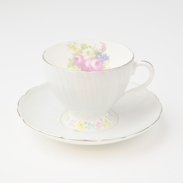 EB FOLEY フォリー プリント+手彩色 ビンテージ カップ&ソーサー 【イギリス】 アンティーク コーヒーカップ ティーカップ