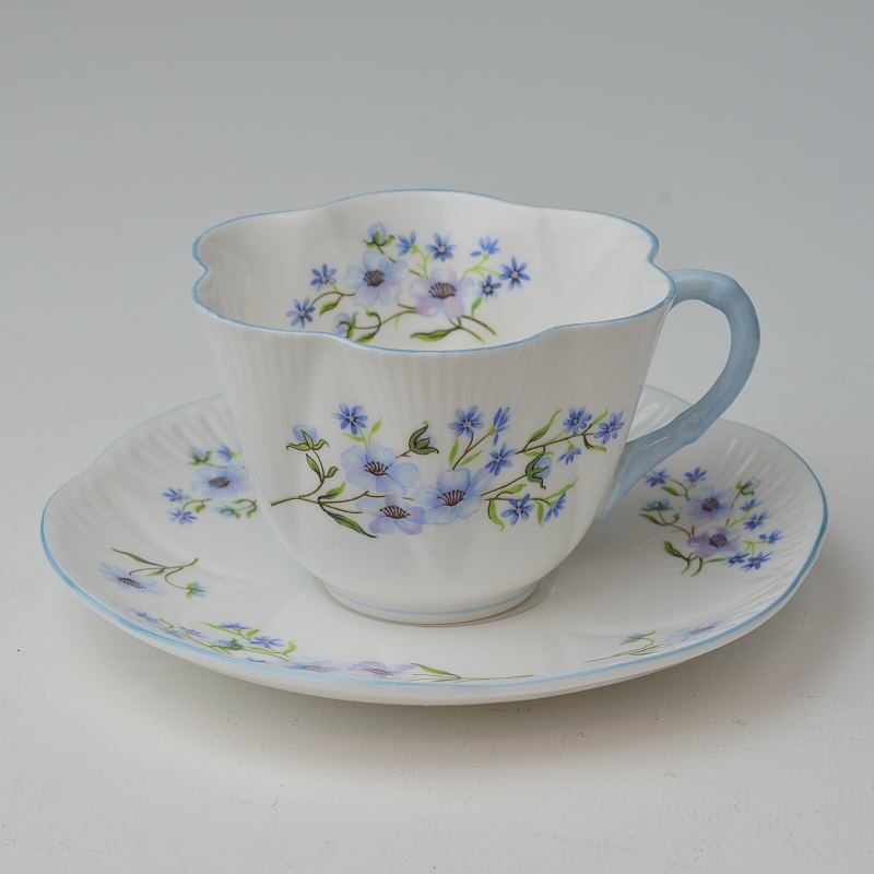 コレクターに人気のshelley シェリーのカップソーサーです。とても美しい名窯として、フォリー、ワイルマン、シェリーと名を変え、1966年に閉窯しその歴史に幕を閉じました。シェリーの製品は本当に美しく、見る人を惹きつけ、どこまでも魅了します。