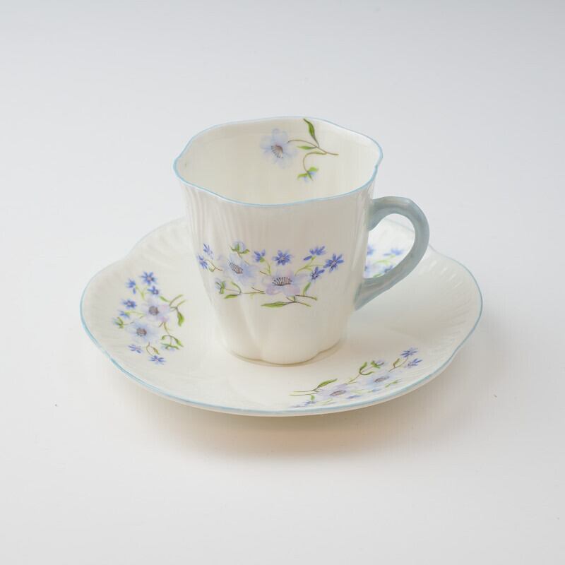 コレクターに人気のshelley シェリーのカップソーサー。Blue Rock。とても美しい名窯として、フォリー、ワイルマン、シェリーと名を変え、1966年に閉窯しその歴史に幕を閉じました。シェリーの製品は本当に美しく、見る人を惹きつけ、どこまでも魅了します。