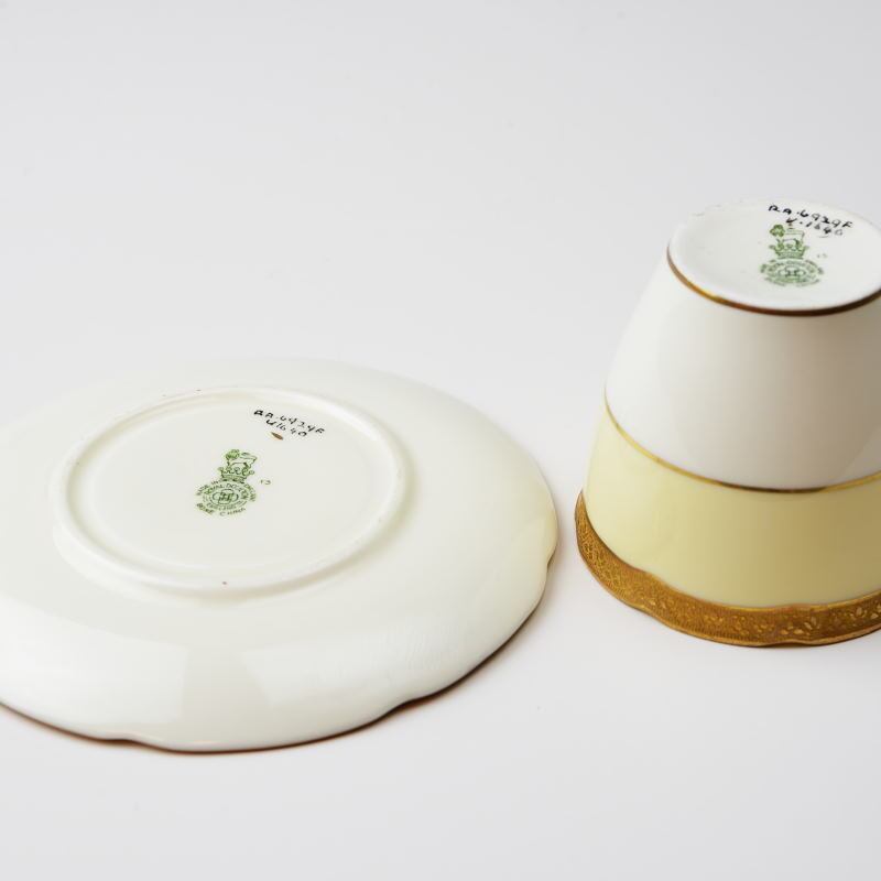 イギリス、ロイヤルドルトンのカップソーサー。ゴールドがとても美しく、それでいてどこか柔らかく優しい雰囲気です。