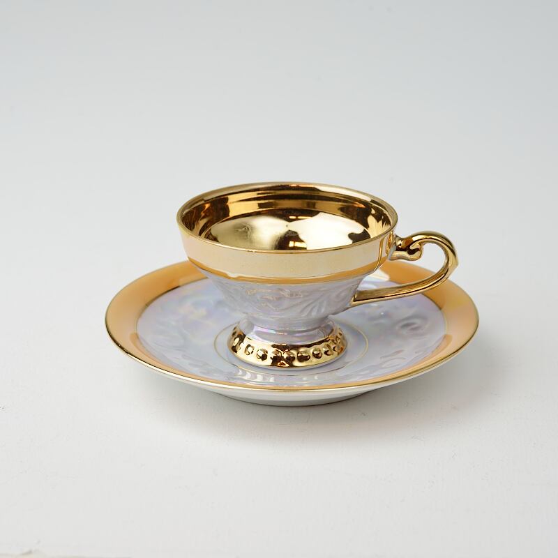 ピカピカの金彩とラスター釉が可愛いドイツのビンテージカップソーサー^^