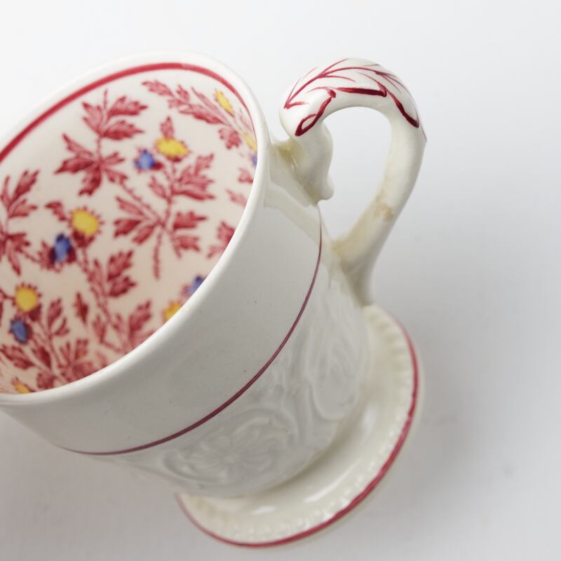 パトリシアンというシリーズは白のものが多いですが、こちらはカップ内側まで綺麗に柄が入り、全体的な白に赤、青、黄が合わさってとても優しい雰囲気です。