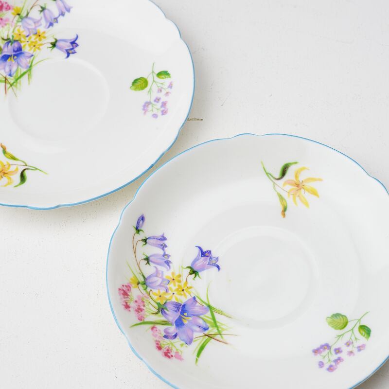 ★アウトレット★Shelley シェリー ペア(2個セット) Wild Flowers 小ぶり ビンテージカップ&ソーサー 【イギリス】 アンティーク コーヒーカップ デミタス