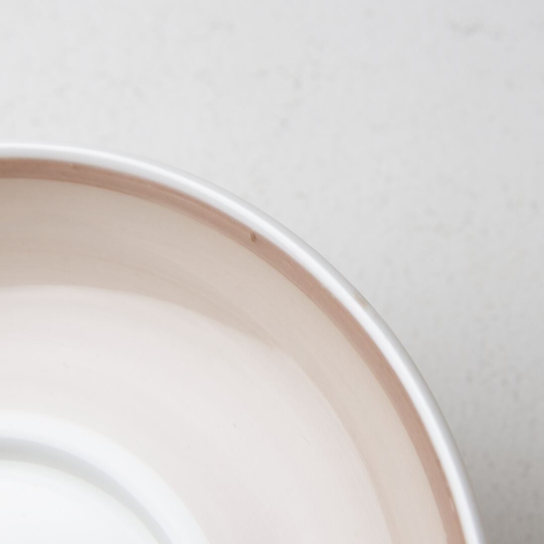 この時代によくみられるので当店では特に分けずに同じ商品として混ぜて発送いたします。(カップが黒いウェッジウッドのブロック体で、ソーサーが薄い茶色の筆記体という組み合わせのものが1客混ざっていますという意味です。)