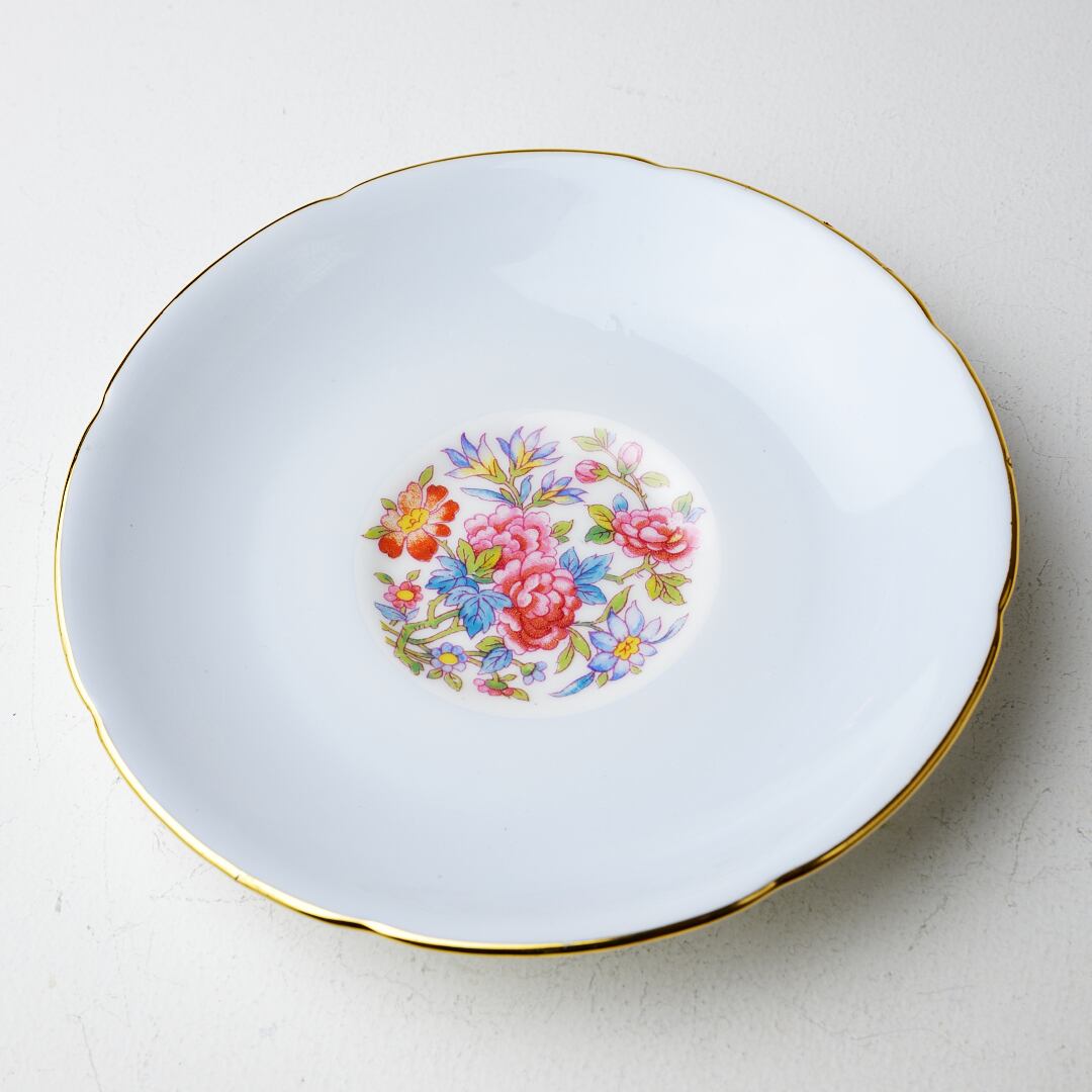 薄ーい水色とやや東洋的な花柄が素敵なカップです。