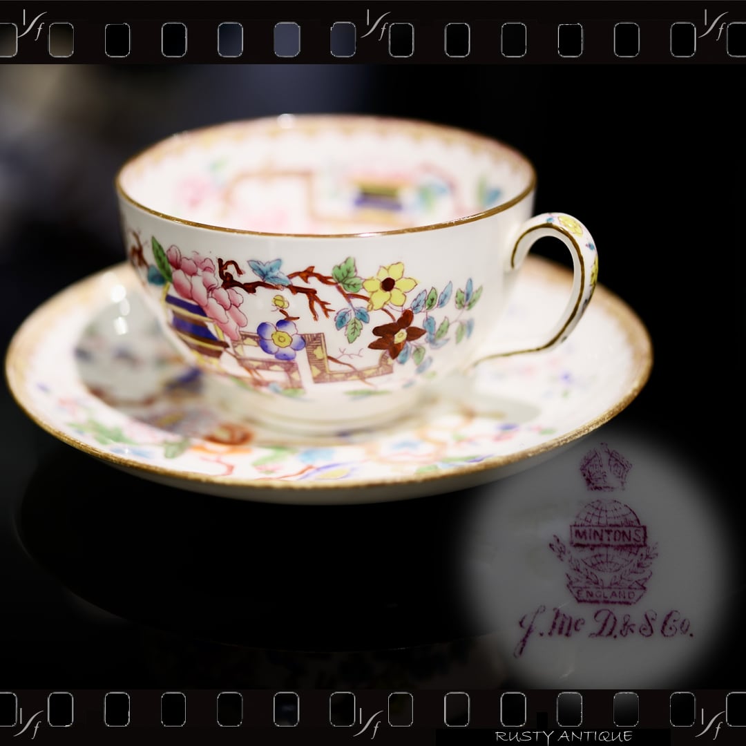 Minton ミントン シノワズリ ペキン柄 ダブルネーム アンティークカップ&ソーサー 【イギリス】 ビンテージ コーヒーカップ ティーカップ