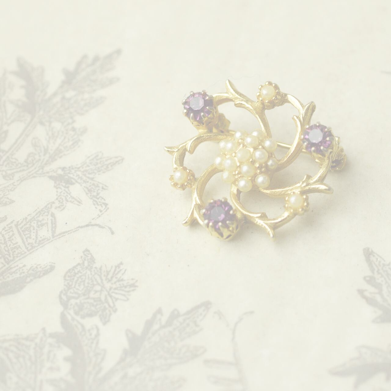 Unknown サインなし ブローチ ゴールド系 23-0009 ビンテージアクセサリー コスチュームジュエリー アンティーク antique vintage レトロ