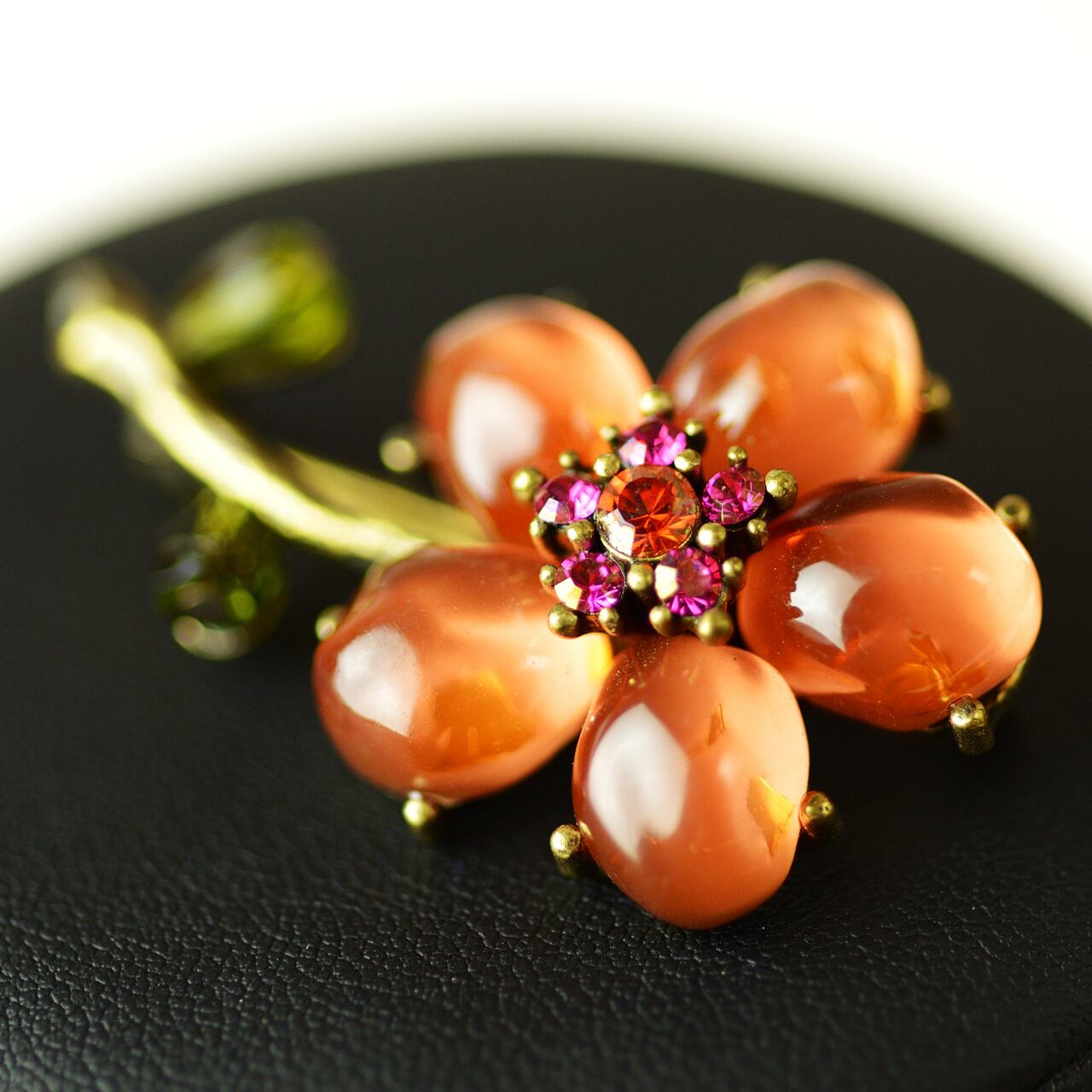 Unknown サインなし 花柄 ブラス系 23-0015 ビンテージアクセサリー コスチュームジュエリー アンティーク antique vintage レトロ ラインストーン