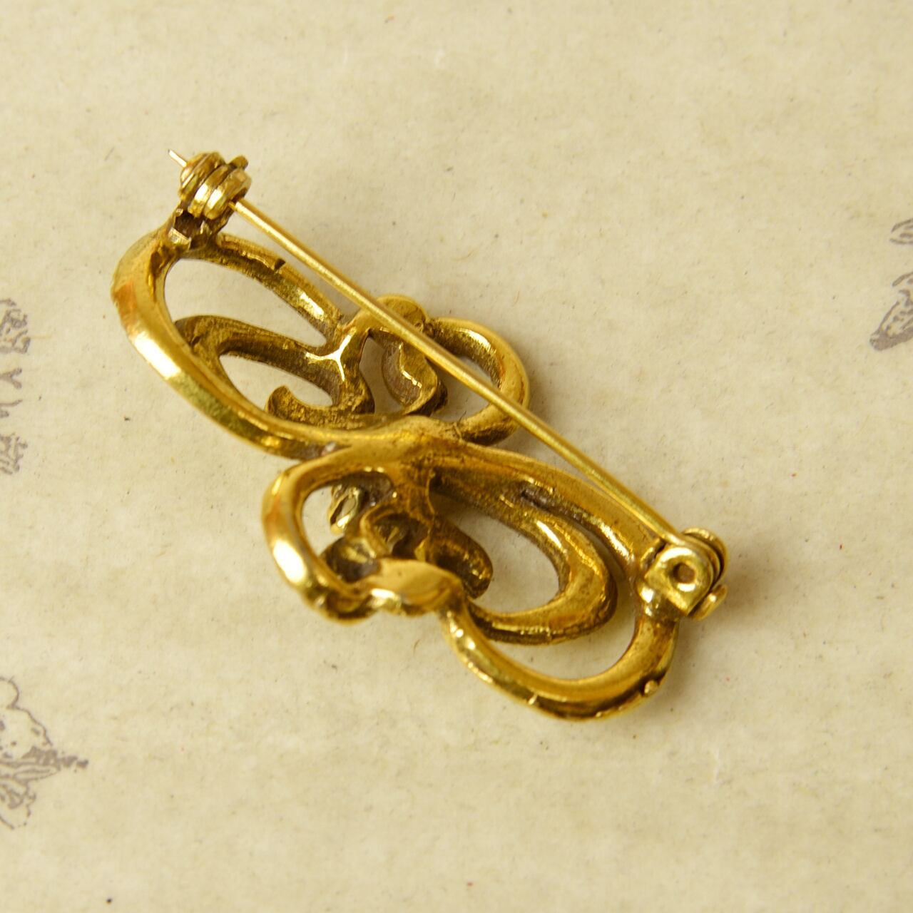 Unknown サインなし 流線&パール ブローチ 23-0039 ビンテージアクセサリー コスチュームジュエリー アンティーク antique vintage レトロ 宝石 ラインストーン