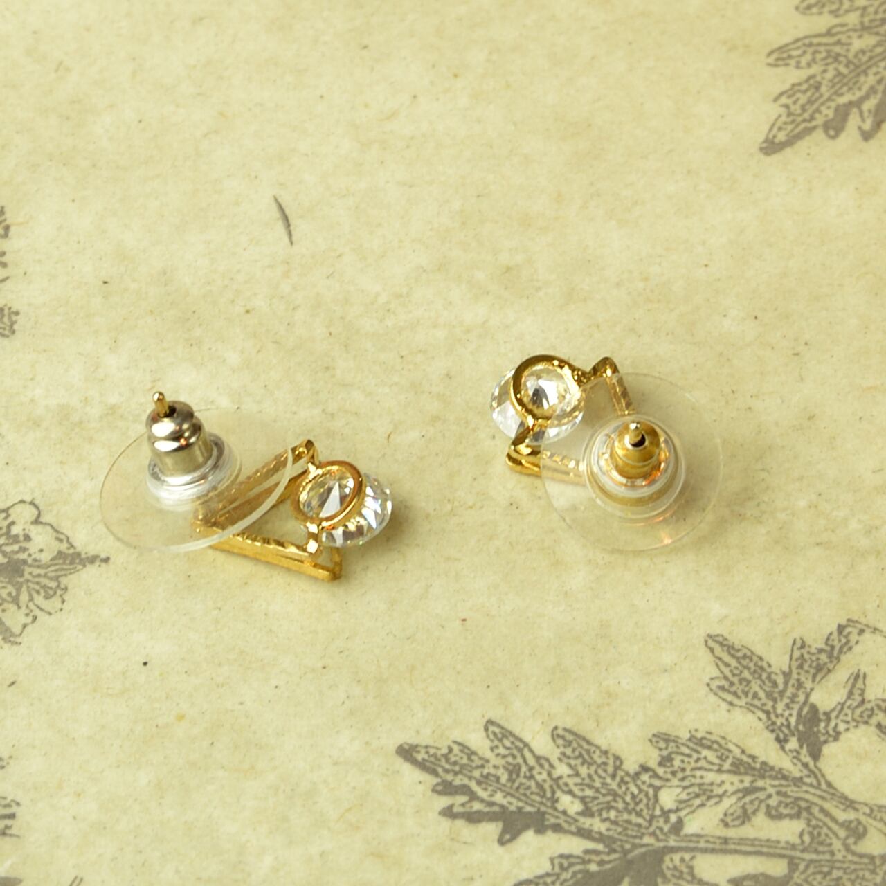 Unknown サインなし トライアングル ピアス 23-0045 ビンテージアクセサリー コスチュームジュエリー アンティーク antique vintage レトロ 宝石 ラインストーン