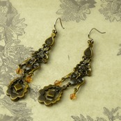 LC刻印(Liz Claiborne リズ クレイボーン?) ブロンズ系 ピアス 23-0071 ビンテージアクセサリー コスチュームジュエリー アンティーク antique vintage レトロ 宝石 ラインストーン