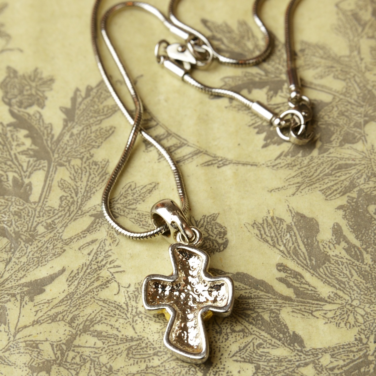 Unknown サインなし クロスデザイン シルバー系 ネックレス 23-0144 十字架 ビンテージアクセサリー コスチュームジュエリー アンティーク antique vintage レトロ 宝石 ラインストーン