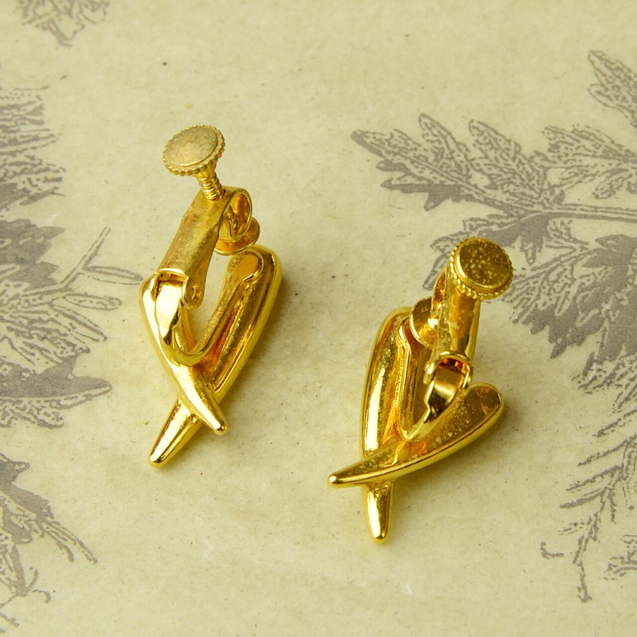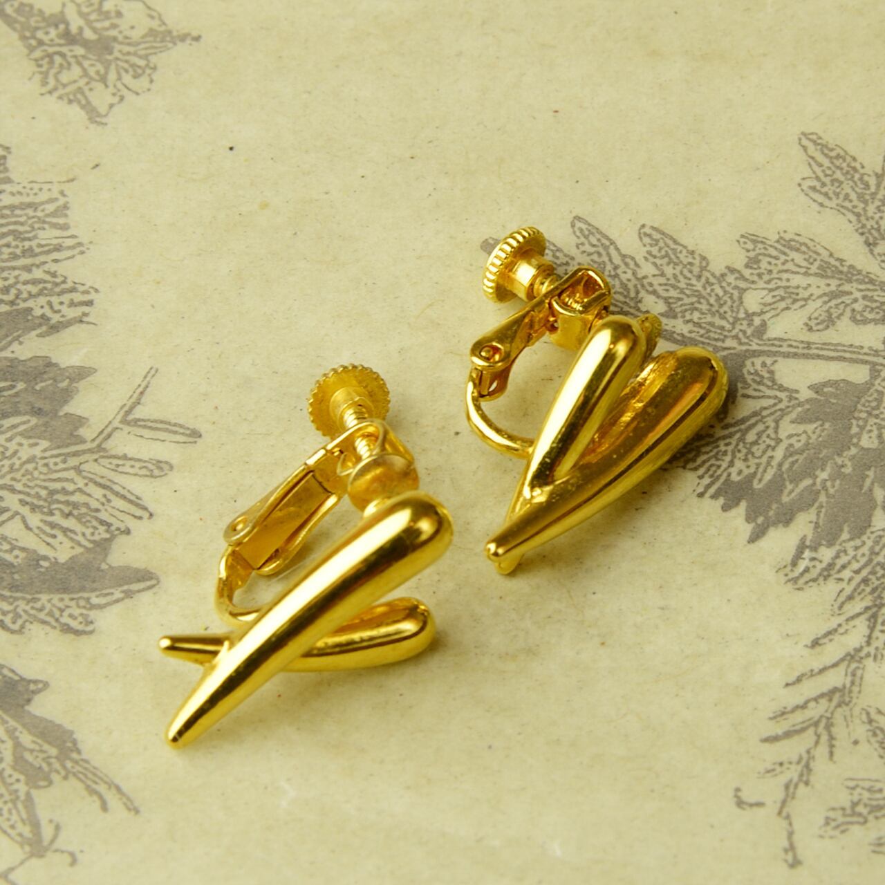 Unknown サインなし ゴールド系 イヤリング 23-0151 ビンテージアクセサリー コスチュームジュエリー アンティーク antique vintage レトロ 宝石 ラインストーン