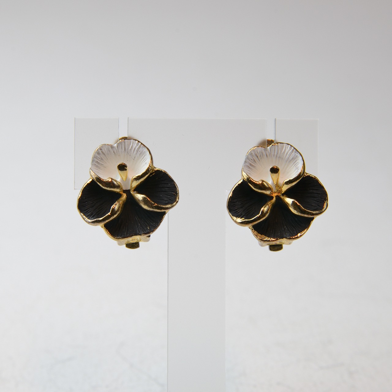 Unknown サインなし ブラック&ホワイト系 イヤリング 23-0158 ビンテージアクセサリー コスチュームジュエリー アンティーク antique vintage レトロ 宝石 ラインストーン