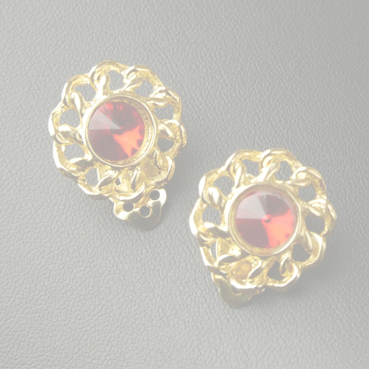 Unknown サインなし ゴールド系 イヤリング 23-0159 ビンテージアクセサリー コスチュームジュエリー アンティーク antique vintage レトロ 宝石 ラインストーン