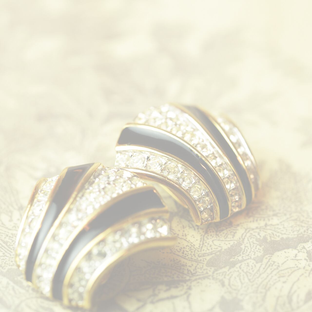 E.PEARL イーパール オーストリア出身デザイナー ブラック系 イヤリング 23-0173 ビンテージアクセサリー コスチュームジュエリー アンティーク antique vintage レトロ 宝石 ラインストーン