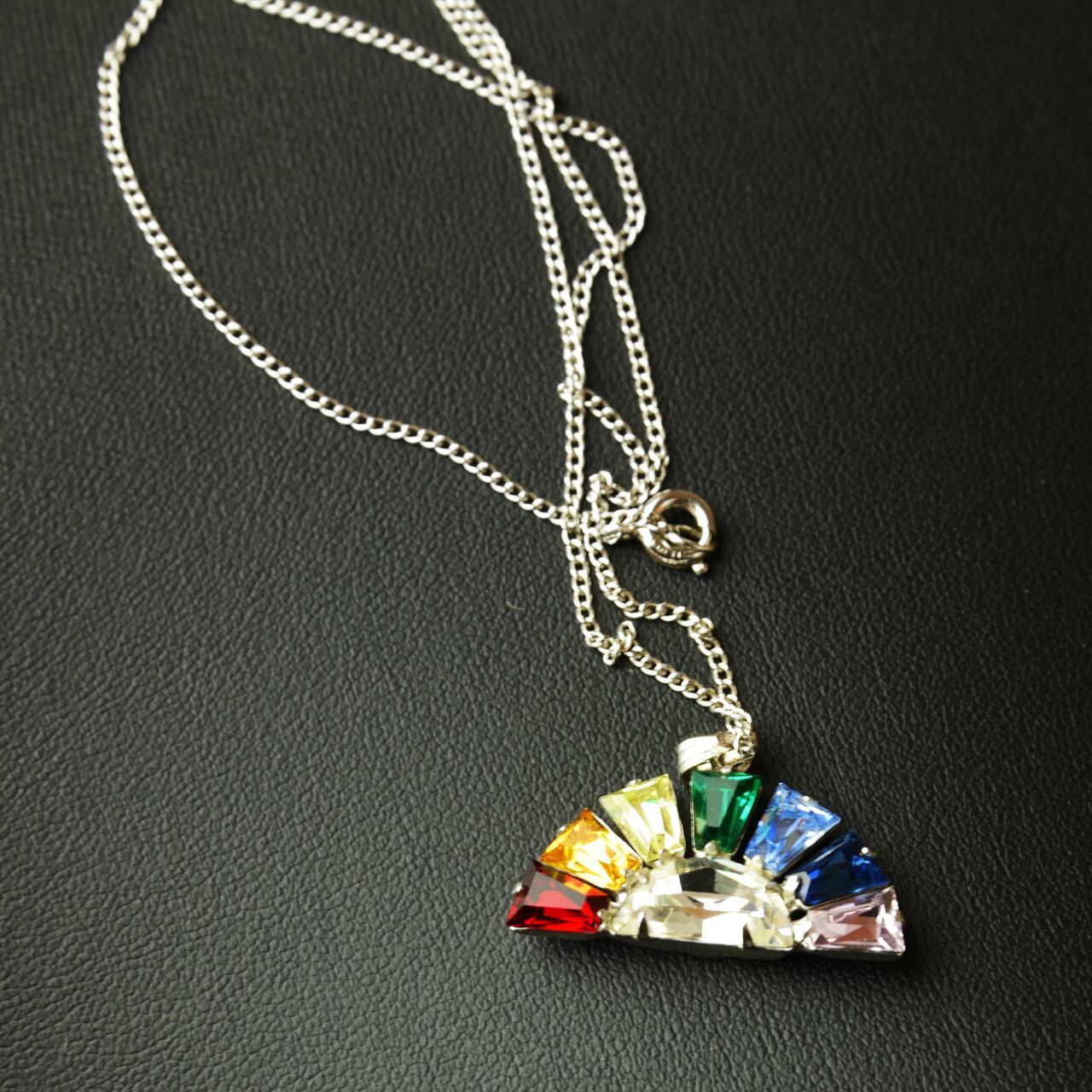 B.DAVID ビーデビット スターリング刻印 カラフル系 ネックレス 23-0175 シルバー925 ビンテージアクセサリー コスチュームジュエリー アンティーク antique vintage レトロ 宝石 ラインストーン