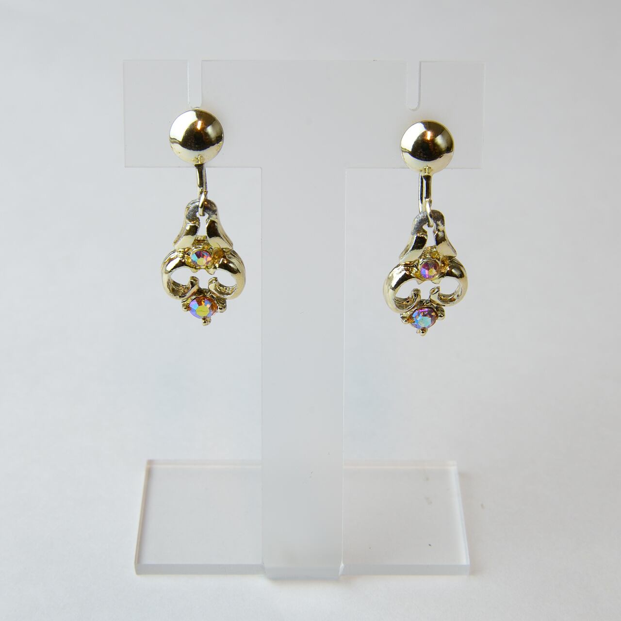 Unknown サインなし ゴールド系 イヤリング 23-0179 ビンテージアクセサリー コスチュームジュエリー アンティーク antique vintage レトロ 宝石 ラインストーン