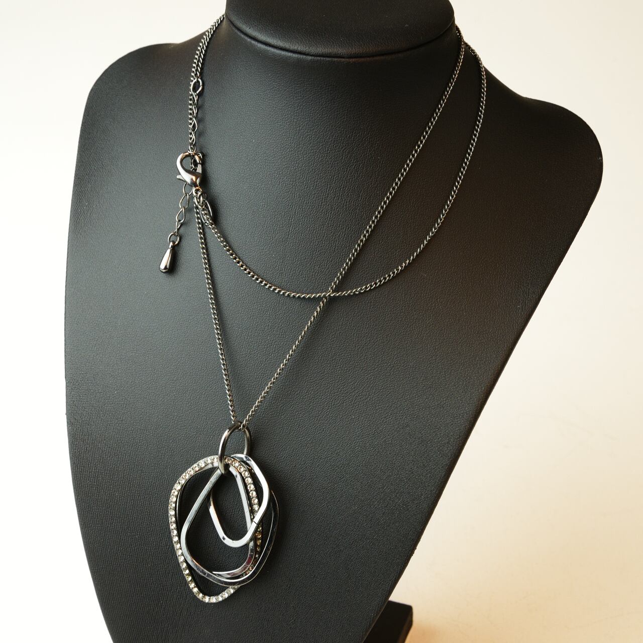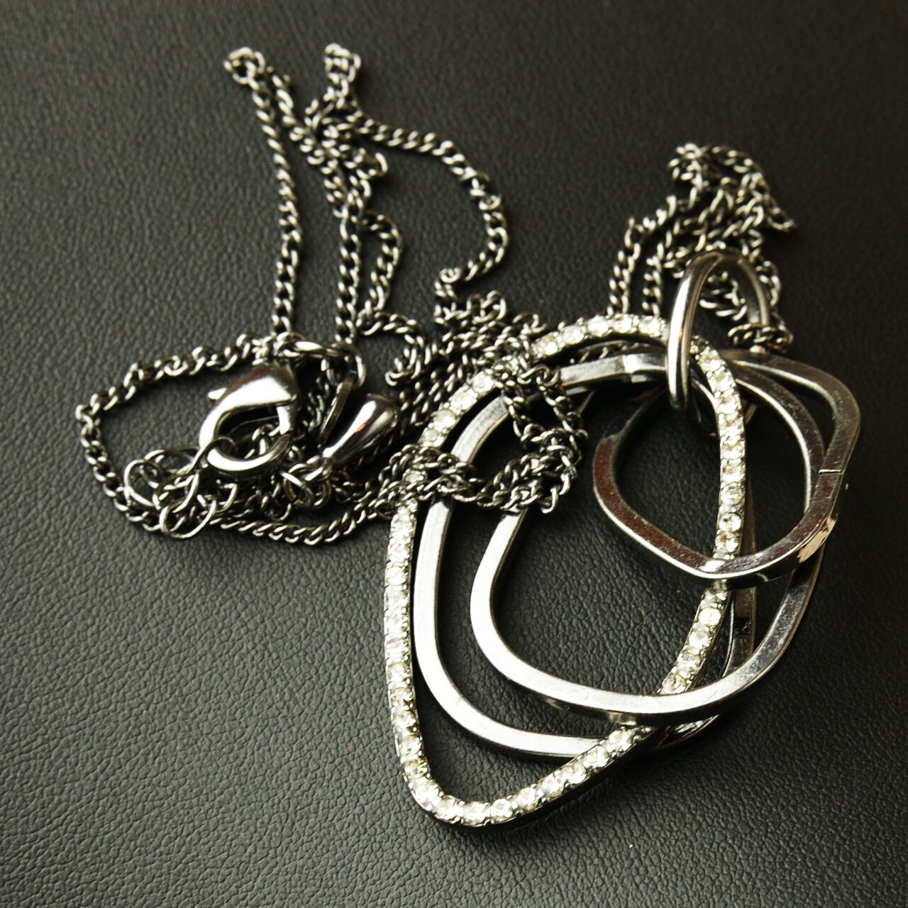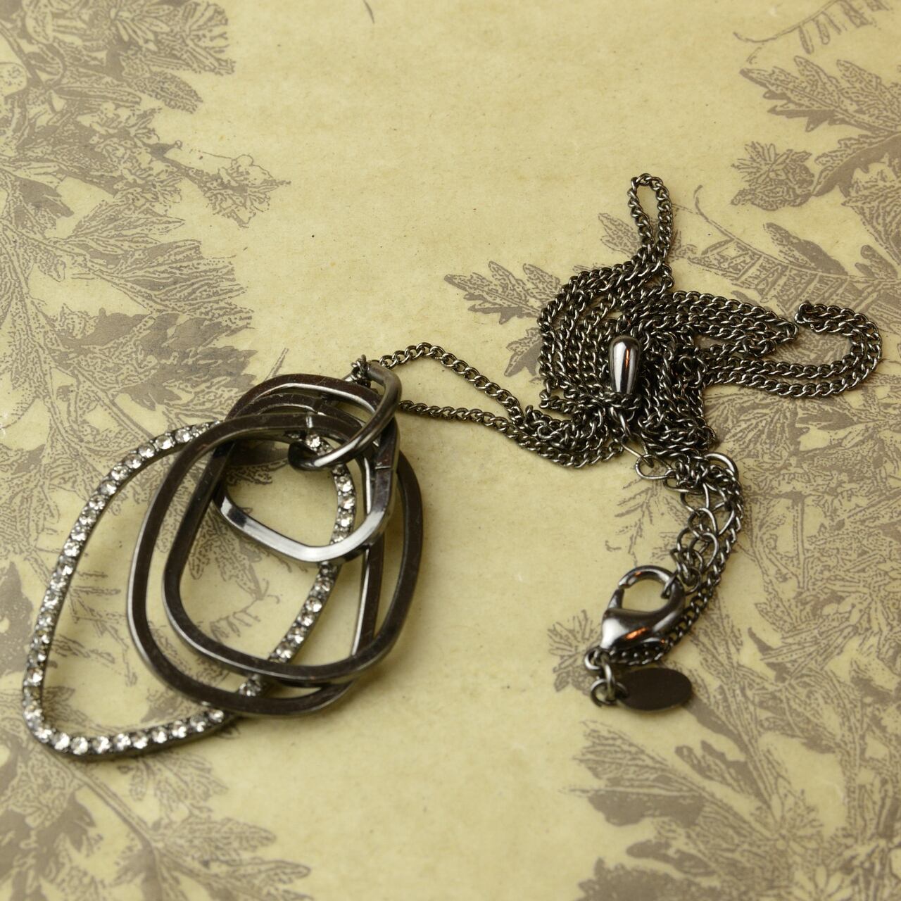 M&S刻印 ブラック系 ネックレス 23-0202 ビンテージアクセサリー コスチュームジュエリー アンティーク antique vintage レトロ 宝石 ラインストーン