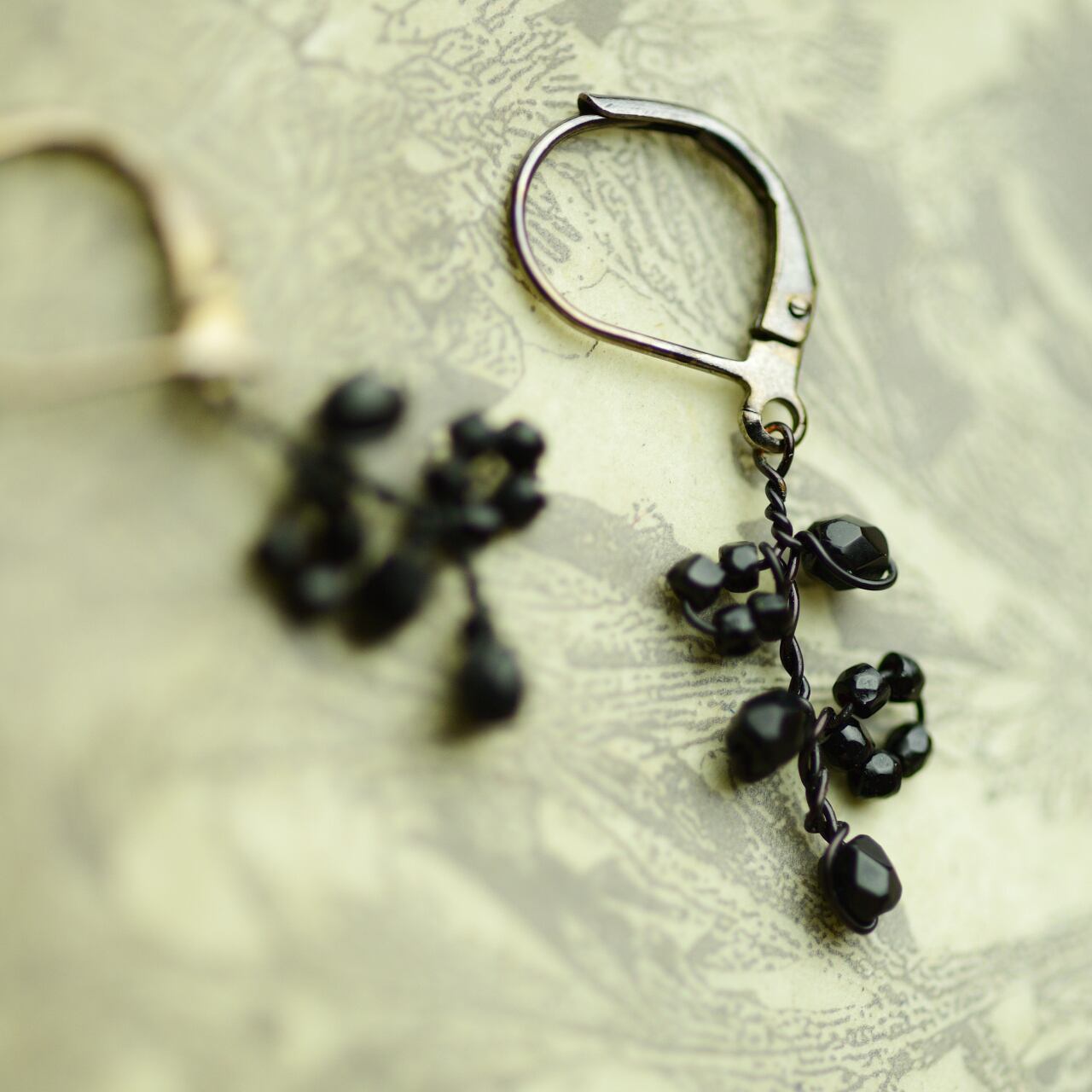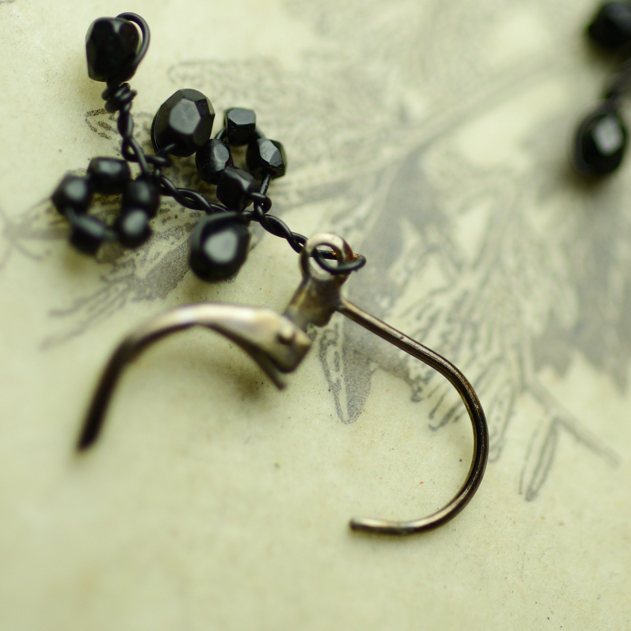 Unknown サインなし ワイヤー&ビーズ ブラック系 ピアス 23-0207 ビンテージアクセサリー コスチュームジュエリー アンティーク antique vintage レトロ 宝石 ラインストーン