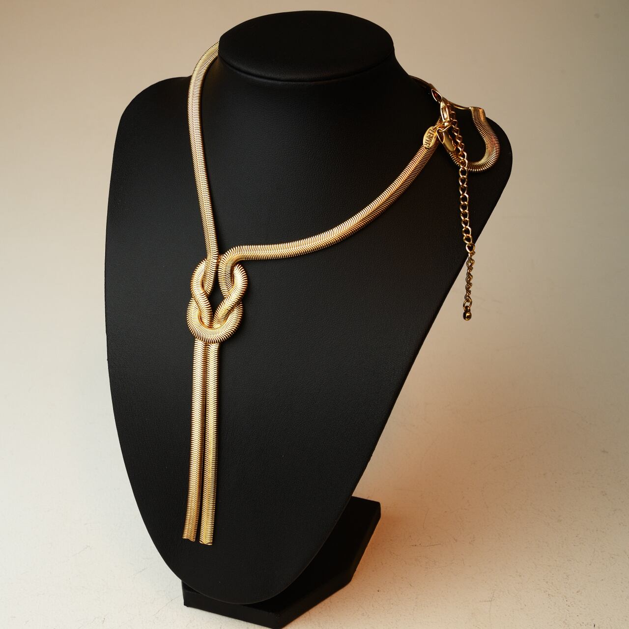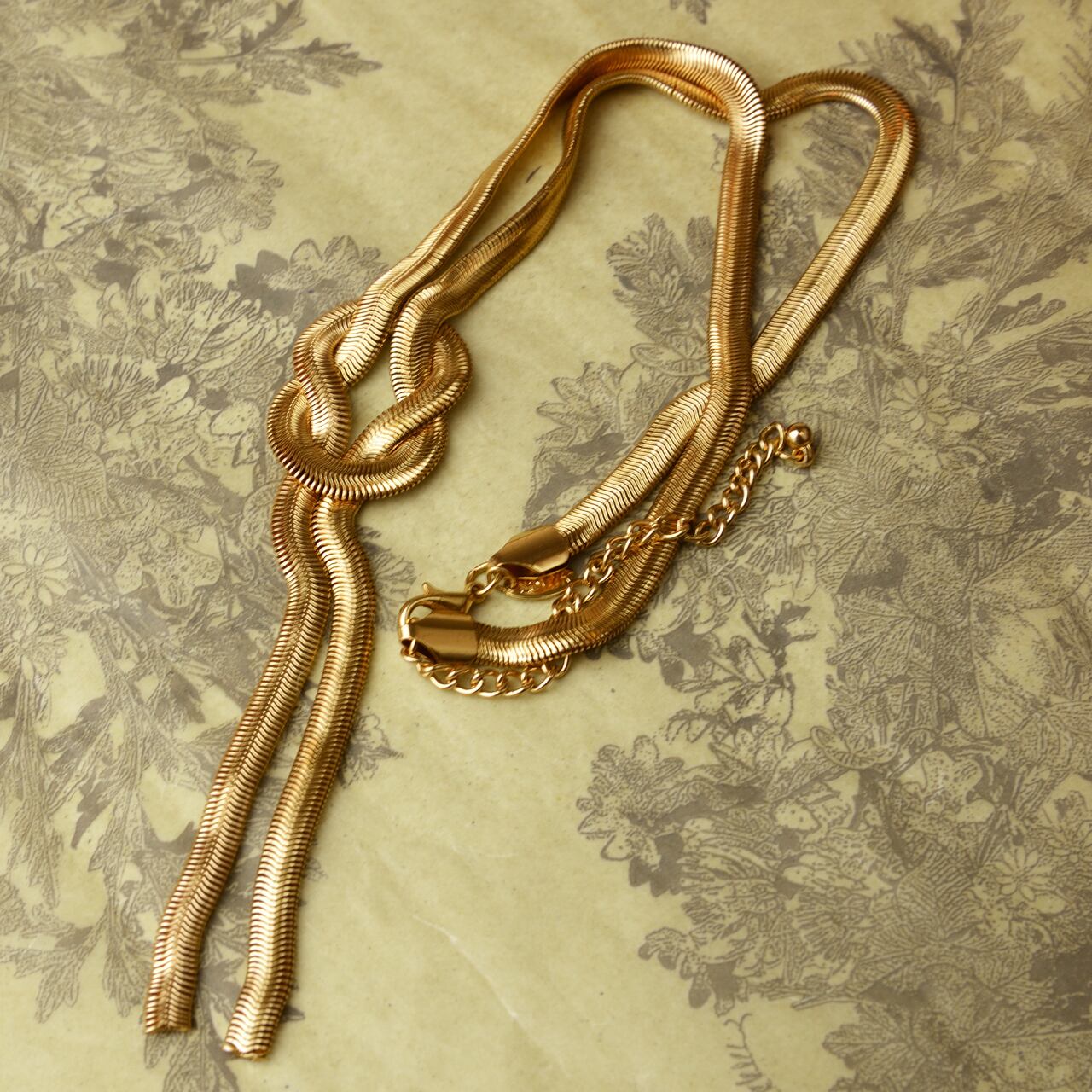 LBVYR フランス 結びデザイン ゴールド系 ネックレス 23-0222 ビンテージアクセサリー コスチュームジュエリー アンティーク antique vintage レトロ 宝石 ラインストーン