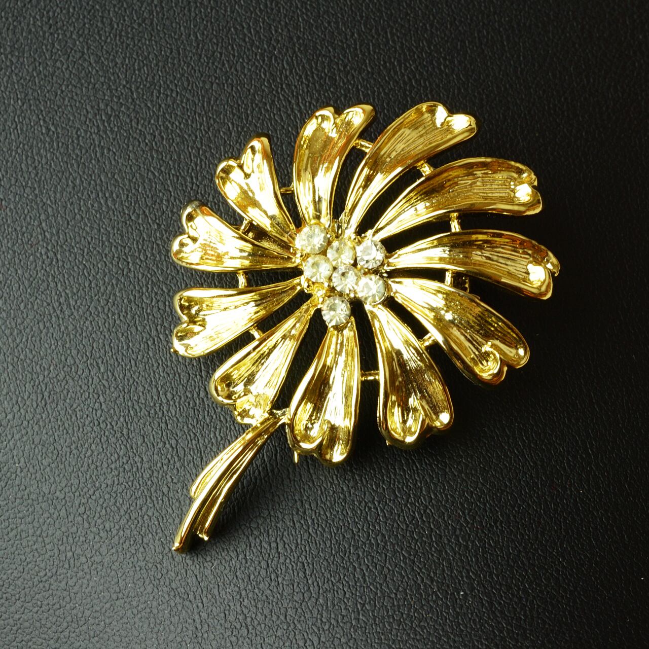 Unknown サインなし ゴールド系 ブローチ 23-0228 ビンテージアクセサリー コスチュームジュエリー アンティーク antique vintage レトロ 宝石 ラインストーン