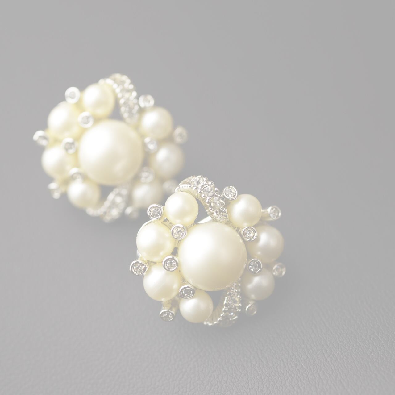 Unknown サインなし パール&シルバー系 イヤリング 23-0239 ビンテージアクセサリー コスチュームジュエリー アンティーク antique vintage レトロ 宝石 ラインストーン