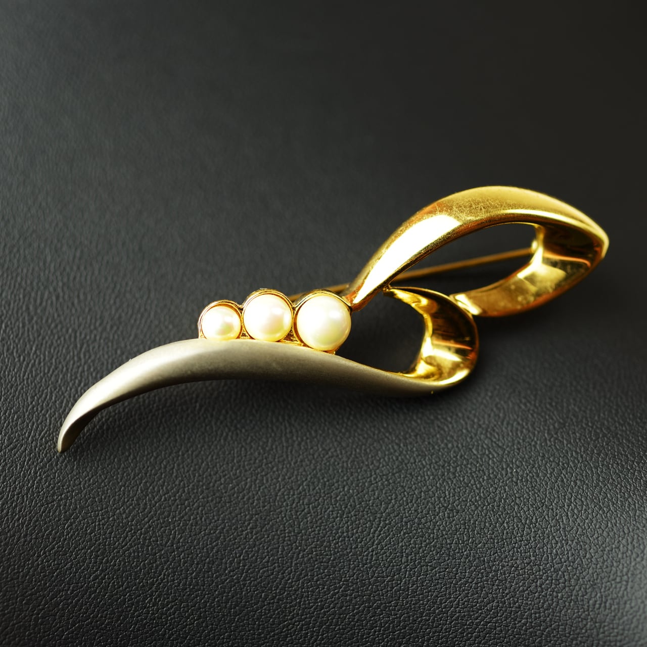 pierre cardin ピエール・カルダン パール&ゴールド系 ブローチ 23-0248 ビンテージアクセサリー コスチュームジュエリー