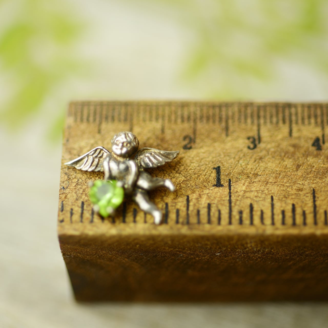 Silver 925 刻印 シルバー エンジェル 天使 グリーン系 ペンダントトップ チャーム 23-0252 ビンテージアクセサリー コスチュームジュエリー 純銀