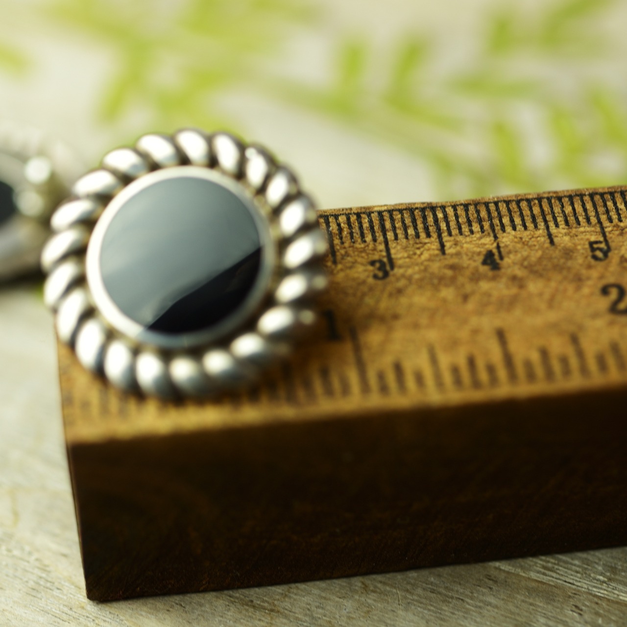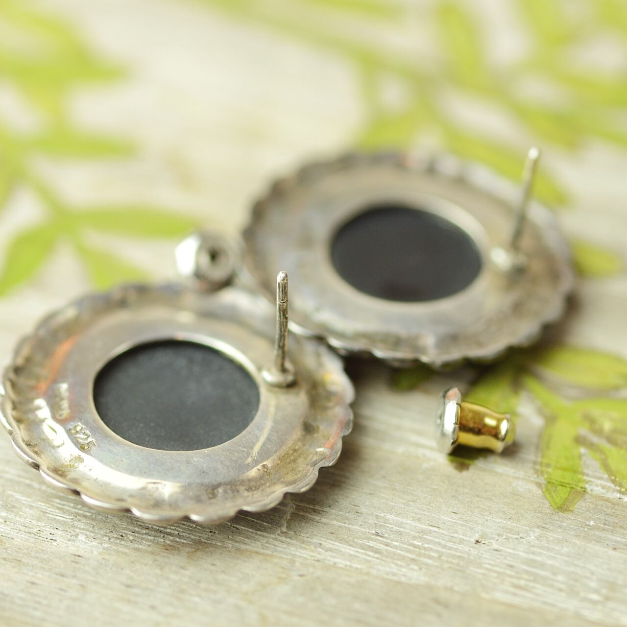 Silver 925 刻印 シルバー まる ブラック系 ピアス 23-0255 ビンテージアクセサリー コスチュームジュエリー 純銀