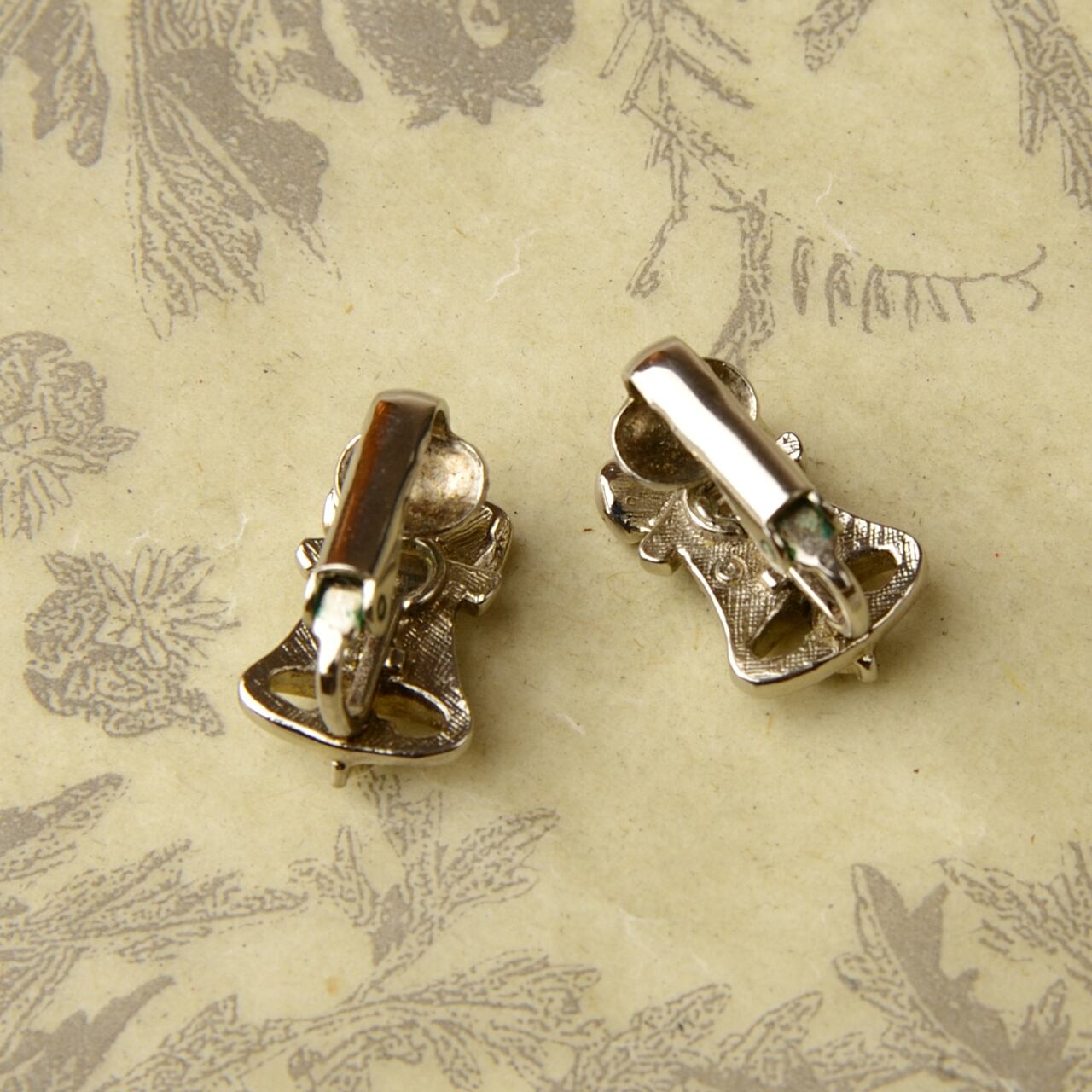 Unknown サインなし ベル&リボン シルバー系 イヤリング 23-0264 ビンテージアクセサリー コスチュームジュエリー アンティーク antique vintage レトロ 宝石 ラインストーン