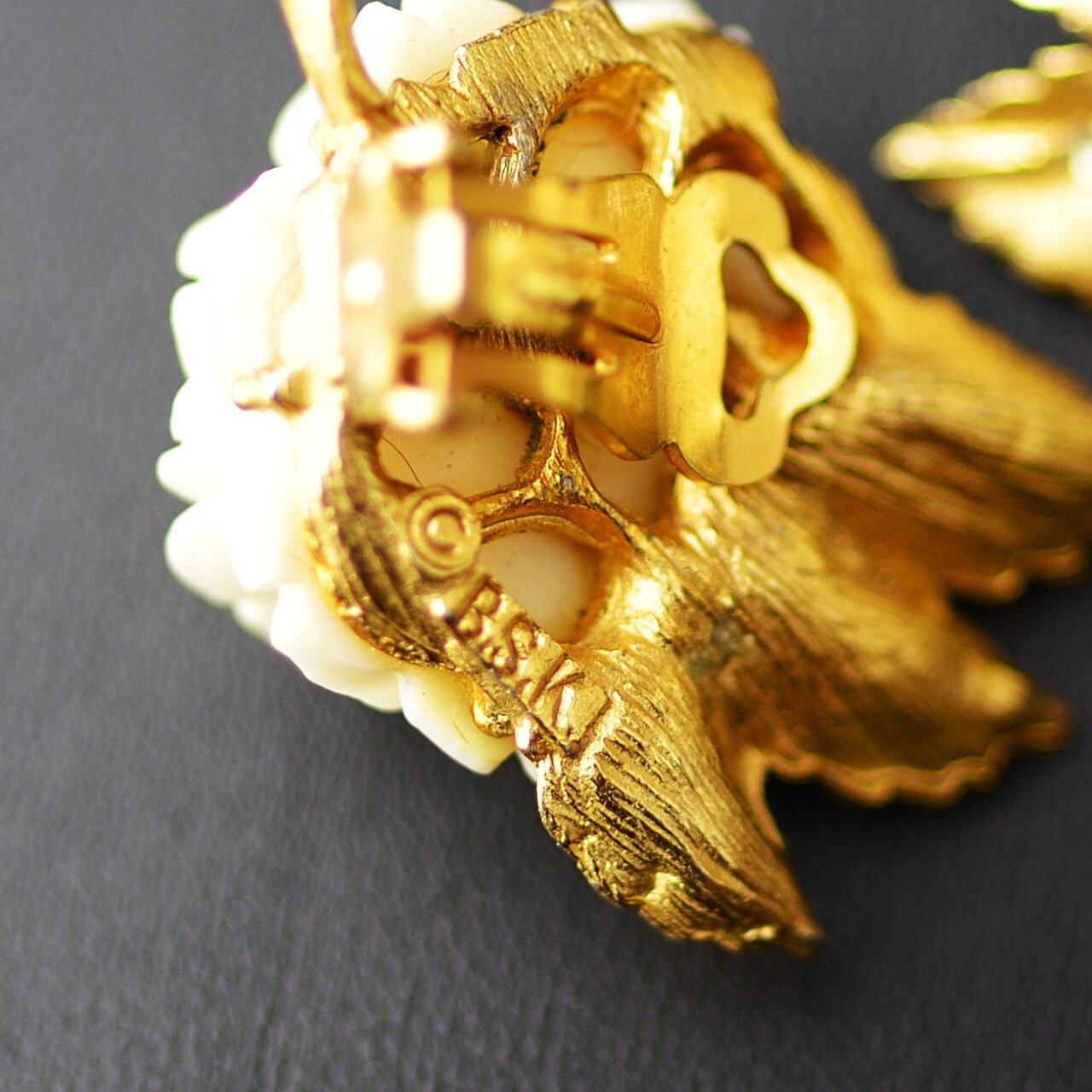 BSK ビーエスケー 薔薇 バラ ストーン ゴールド系 ブローチ 23-0274 ビンテージアクセサリー コスチュームジュエリー アンティーク antique vintage レトロ 宝石 ラインストーン