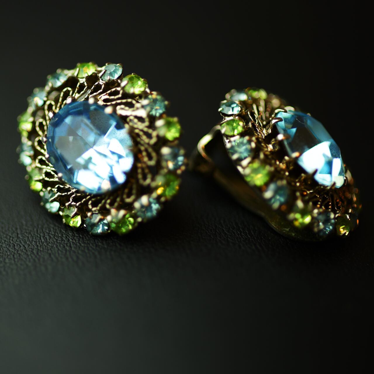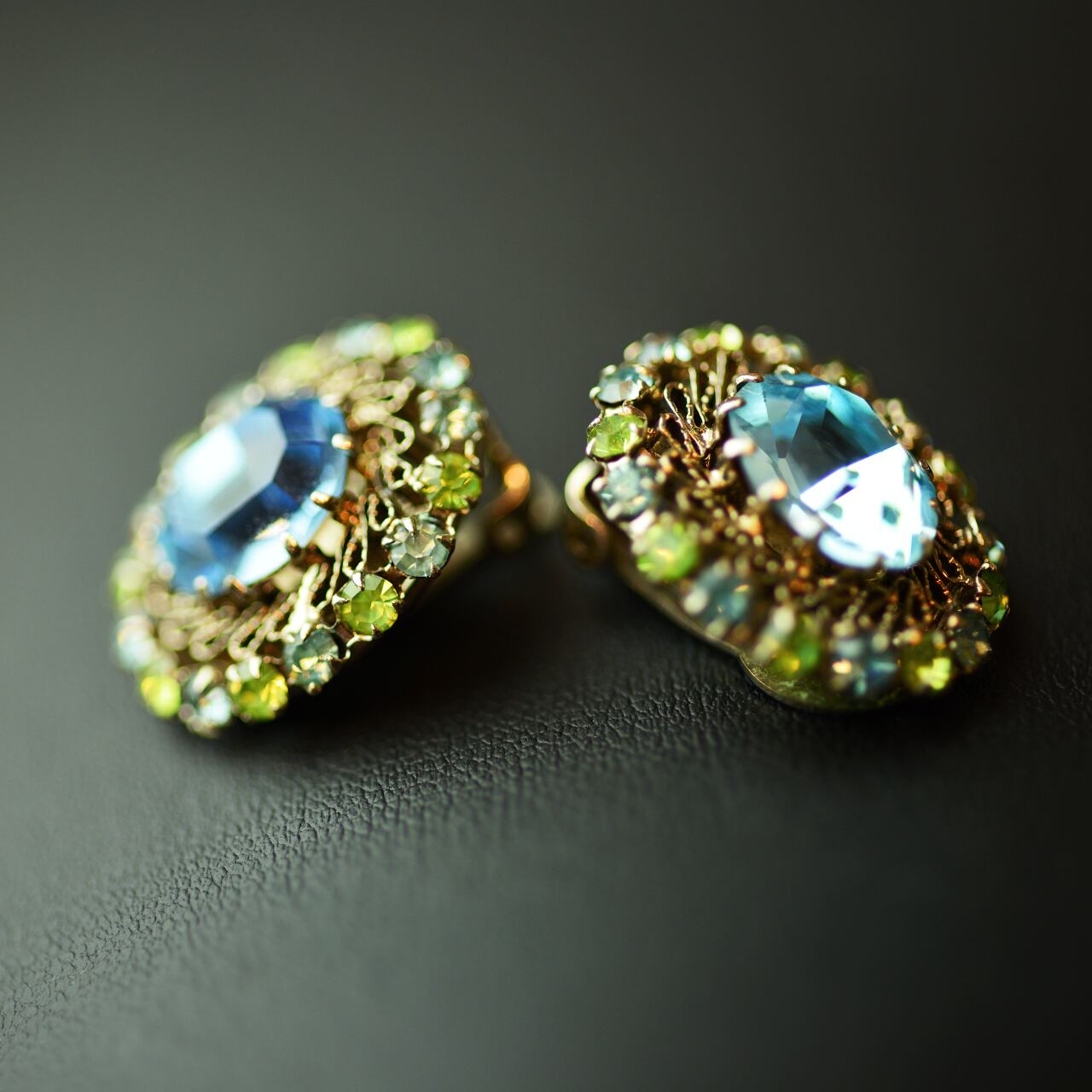 AUSTRIA オーストリア刻印 ブルー&グリーン ストーン系 イヤリング 23-0289 ビンテージアクセサリー コスチュームジュエリー アンティーク antique vintage レトロ 宝石 ラインストーン