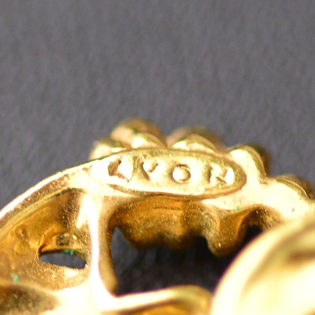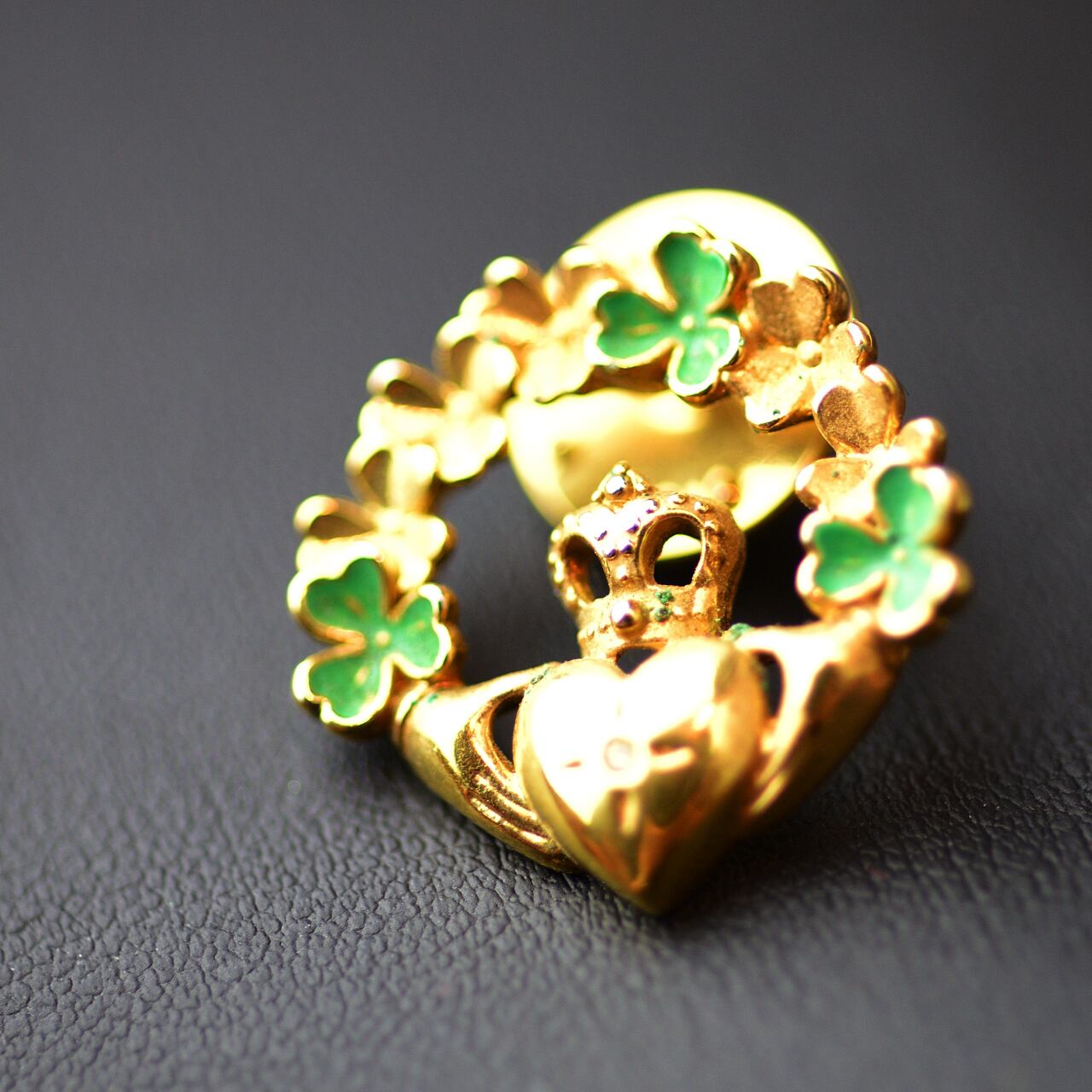 AVON エイボン クローバー ハート クラウン ゴールド系 ピンバッチ ピンブローチ 23-0325 ビンテージアクセサリー コスチュームジュエリー アンティーク antique vintage レトロ 宝石 ラインストーン