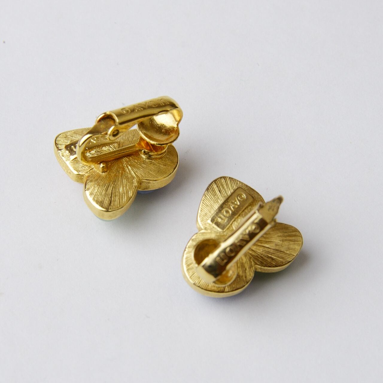 AVON エイボン 3色ストーン ゴールド系 イヤリング 23-0331 ビンテージアクセサリー コスチュームジュエリー アンティーク antique vintage レトロ 宝石 ラインストーン