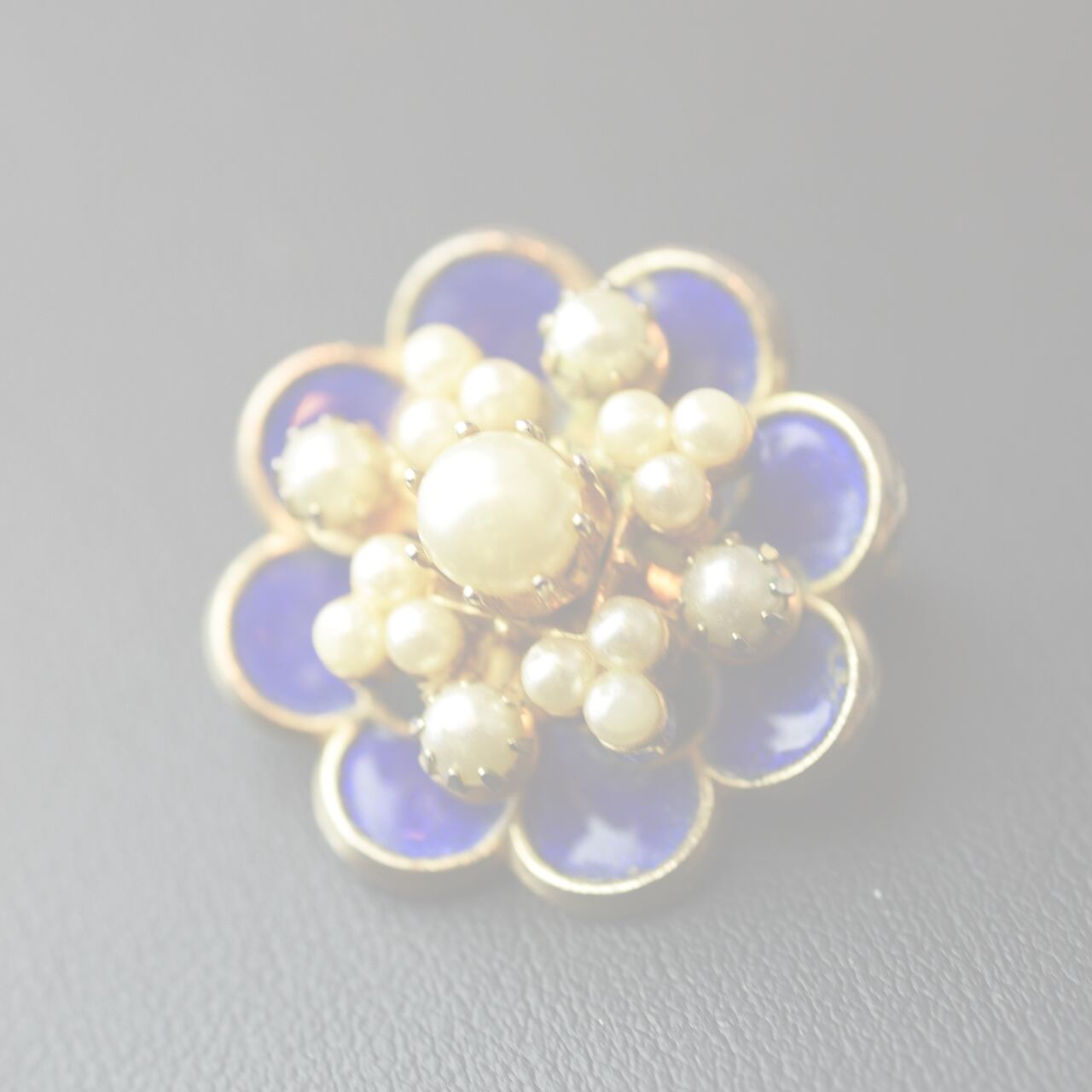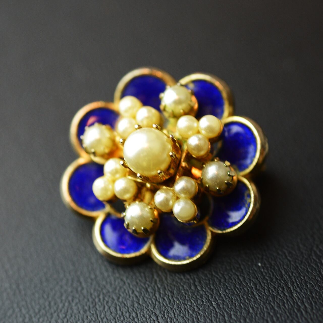 Coro コロ パール 紺 藍 ネイビー系 ブローチ 23-0360 ビンテージアクセサリー コスチュームジュエリー アンティーク antique vintage レトロ 宝石 ラインストーン