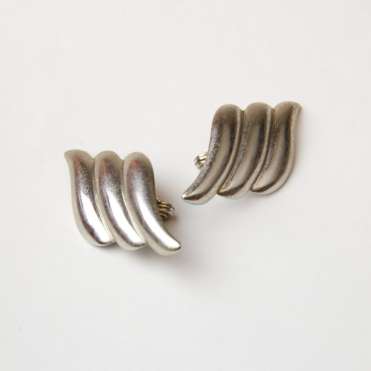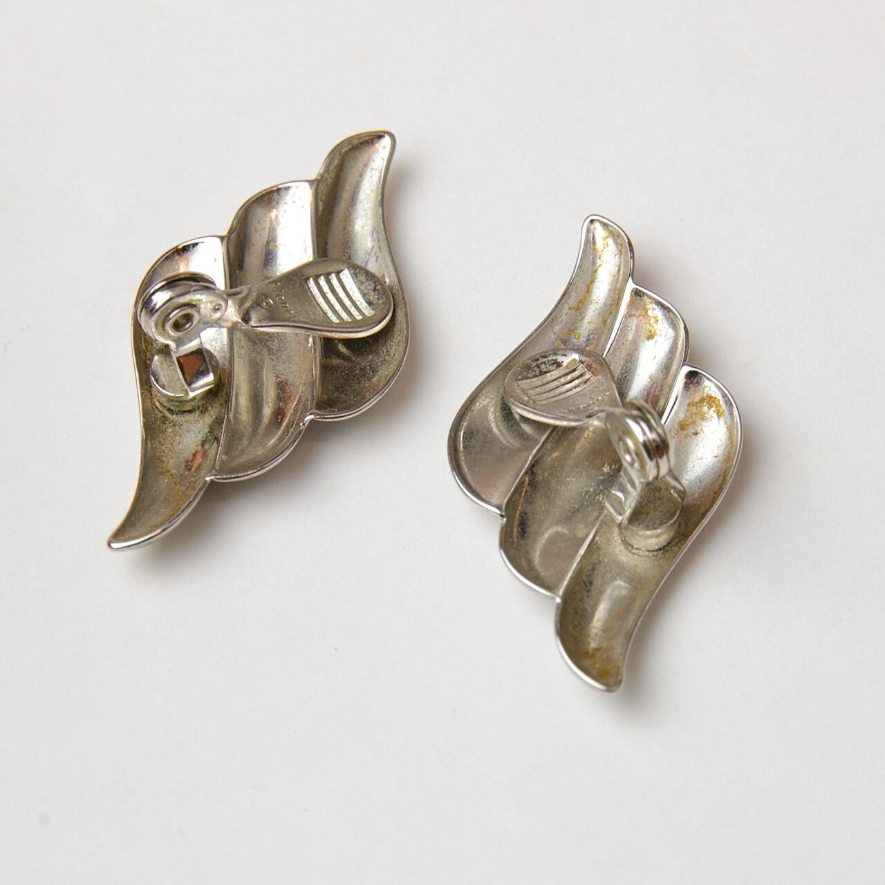 MONET モネ 羽根? シルバー系 イヤリング 23-0362 ビンテージアクセサリー コスチュームジュエリー アンティーク antique vintage レトロ 宝石 ラインストーン