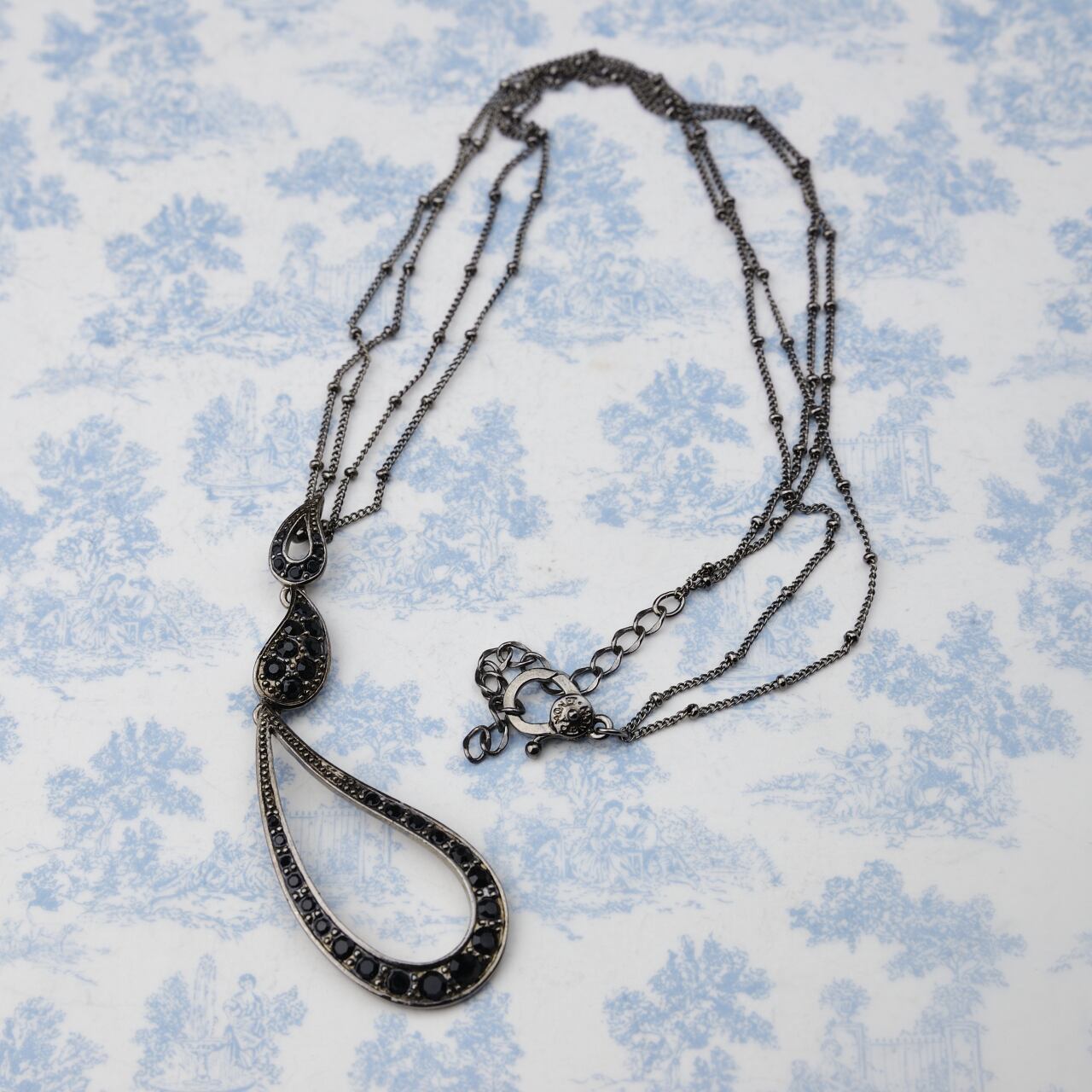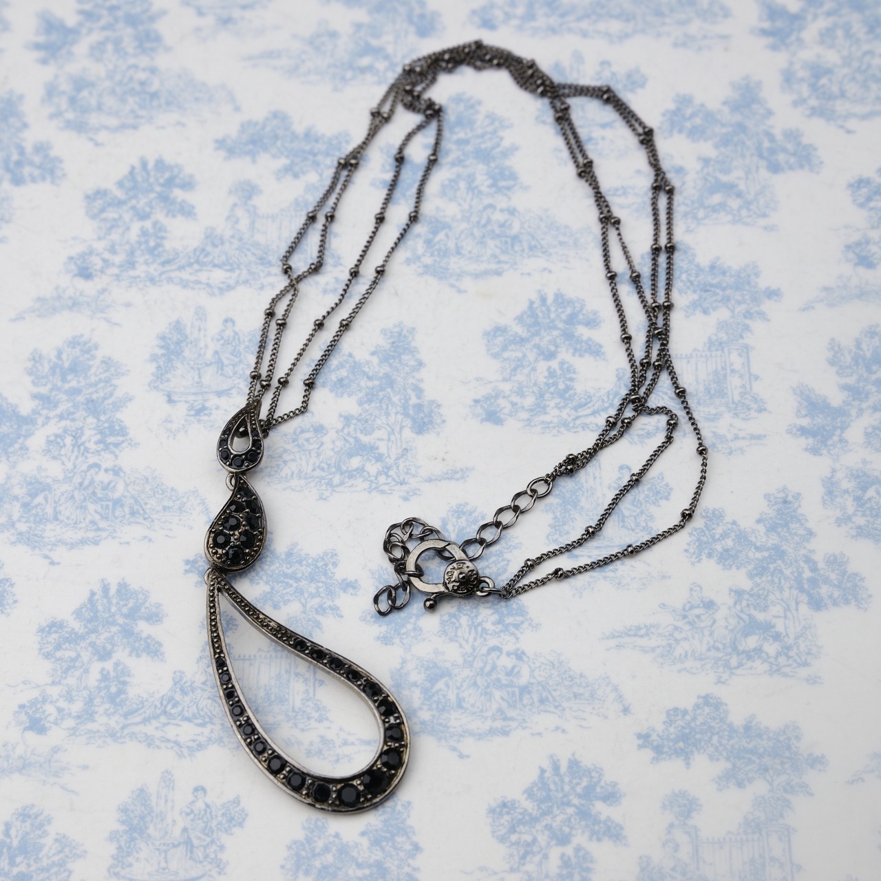 MONET モネ ブラック ストーン シルバー系 ネックレス 23-0429 ビンテージアクセサリー コスチュームジュエリー アンティーク antique vintage レトロ 宝石 ラインストーン