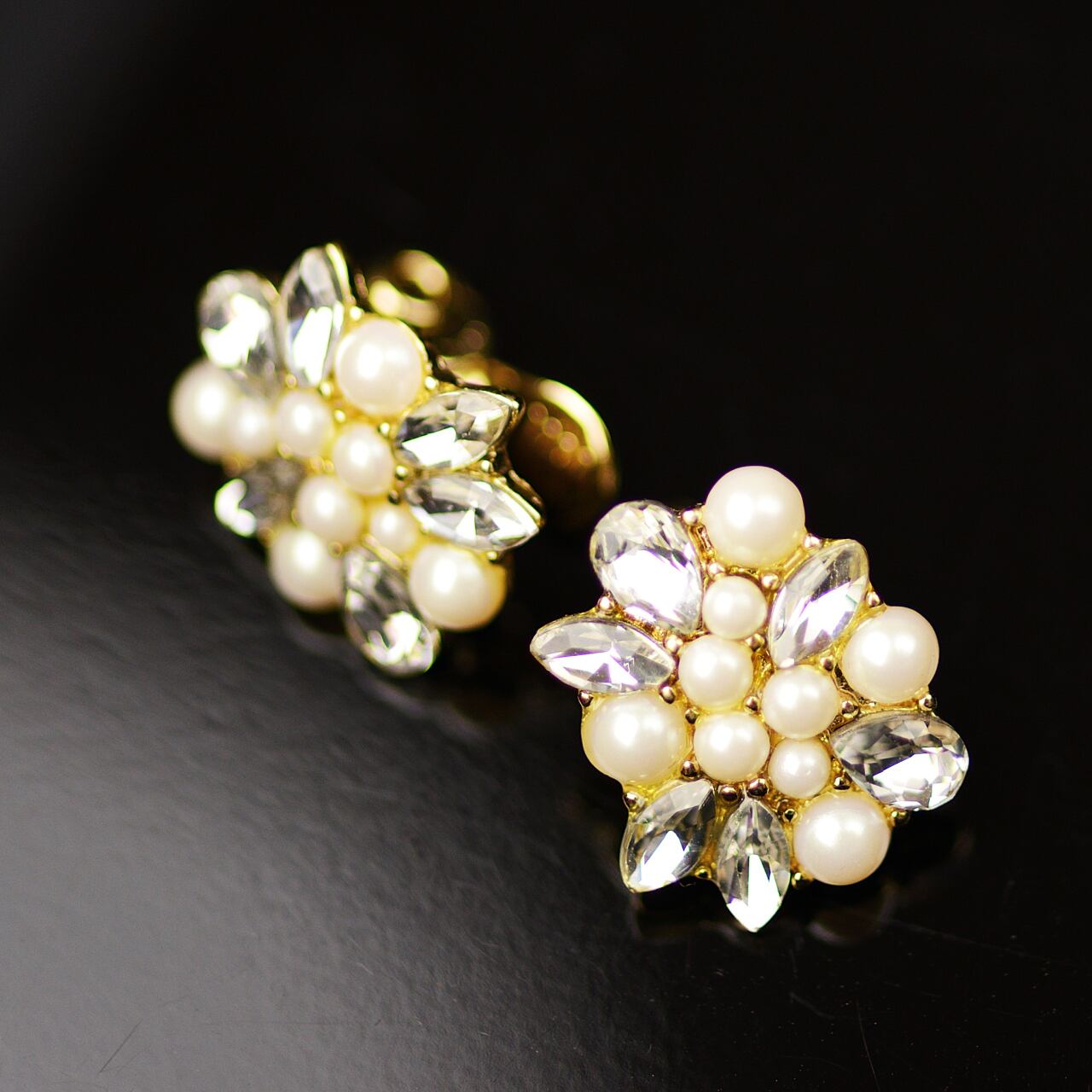 Unknown サインなし パール ミラー シルバー&ゴールド系 イヤリング ビンテージアクセサリー コスチュームジュエリー アンティーク antique vintage レトロ