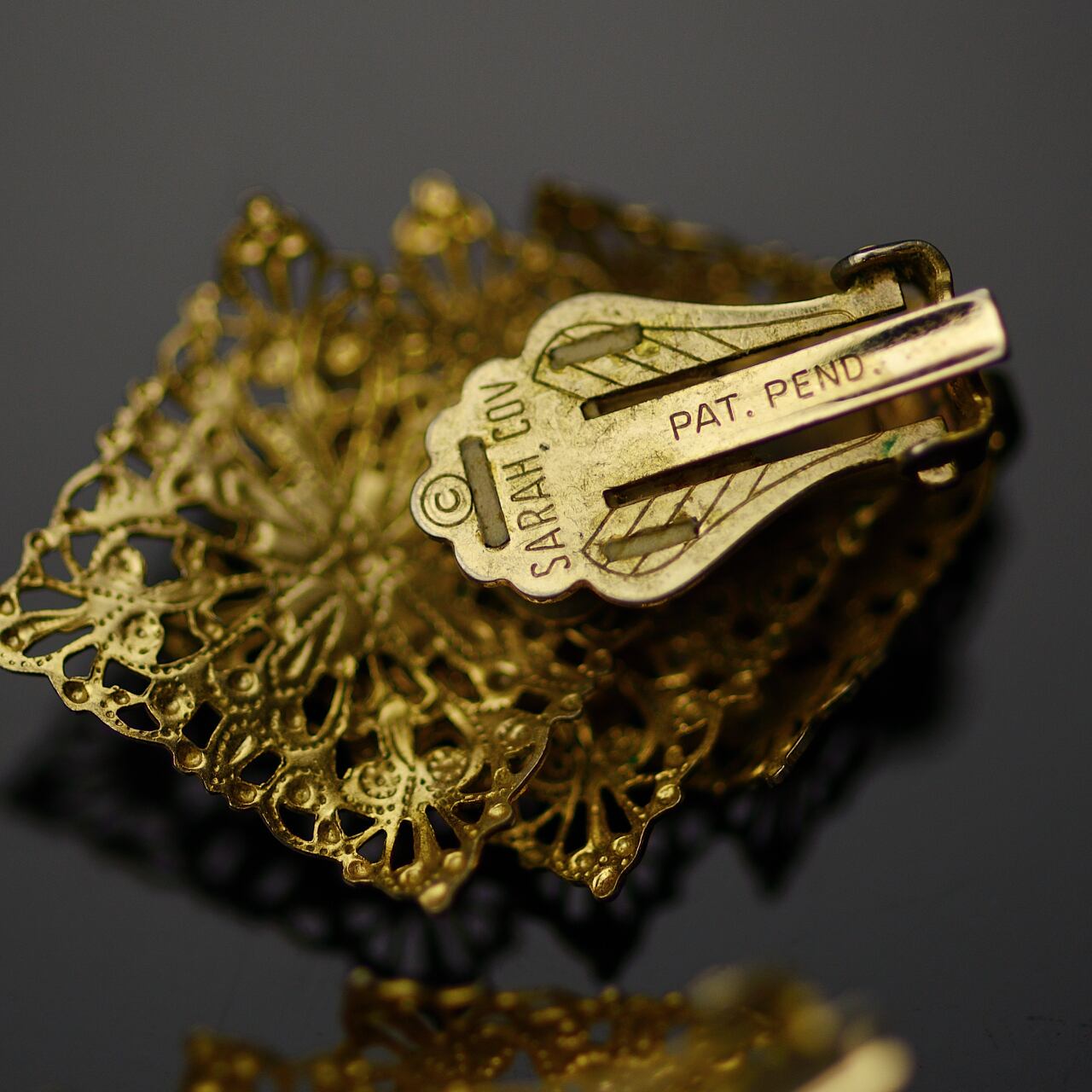 SARAH COV サラコベントリー 透かし ゴールド系 イヤリング ビンテージアクセサリー コスチュームジュエリー アンティーク antique vintage レトロ